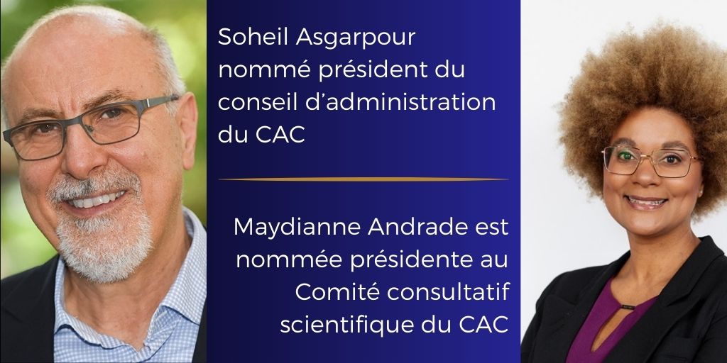 Alors que le CAC a entamé un nouveau chapitre passionnant de son évolution, guidé par son nouveau plan stratégique, nous avons également accueilli cette année de nouveaux leaders au sein de deux importants comités de gouvernance. Avec les nominations de Soheil Asgarpour à la présidence de notre Conseil d’administration et de Maydianne Andrade à la présidence de notre Comité consultatif scientifique, nous adoptons de nouvelles idées et de nouvelles perspectives pour écrire le prochain chapitre du CAC. Et ce n’est pas fini : forts de cet élan, nous avons lancé un appel pour recruter deux nouveaux membres du Conseil d’administration afin d’élargir encore l’étendue et la diversité de notre leadership.